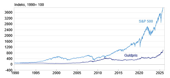 ”Mange investorer, der er skeptiske over for dollaren, har længe set guld som en sikker havn. Guld giver i sig selv ikke renteindtægter, men er afhængigt af prisstigninger for afkast. Derfor trives det især i perioder med lave renter, hvor alternativer som kontanter og obligationer bliver mindre attraktive”.